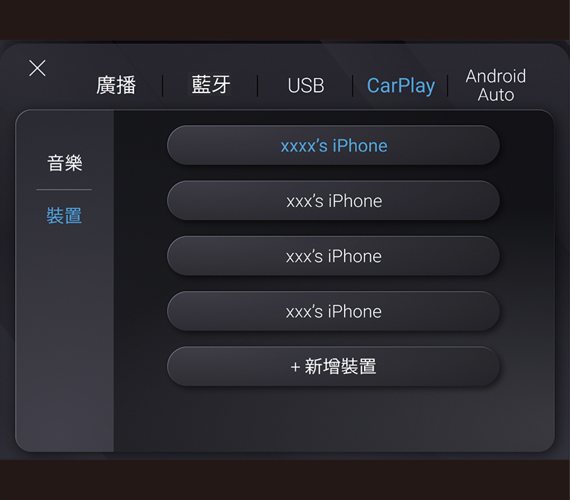 - 如遇有線連結問題,請先移除車輛端的 USB Lightning 線,並清除裝置列表中目前手機的資訊,靜待 3~5 秒後再重新連結。