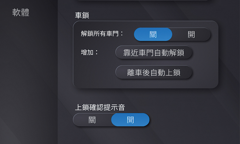 –可設定車輛解鎖時,是否同時解鎖所有車門。