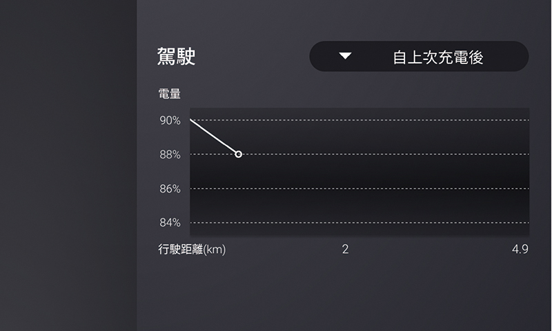 點選畫面右方的選單可設定依照“自上次充電後”、“自上次駕駛後”方式來顯示電量的變化曲線。