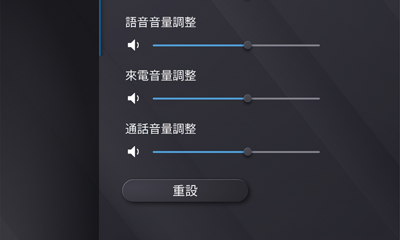 以手指按壓並左右滑動可個別調整語音 / 來電 / 通話的音量大小。