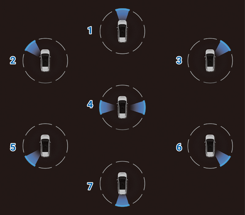 - 左後影像 5 / 右後影像 6:上方畫面會顯示車輛左後方 / 右後方的影像。
