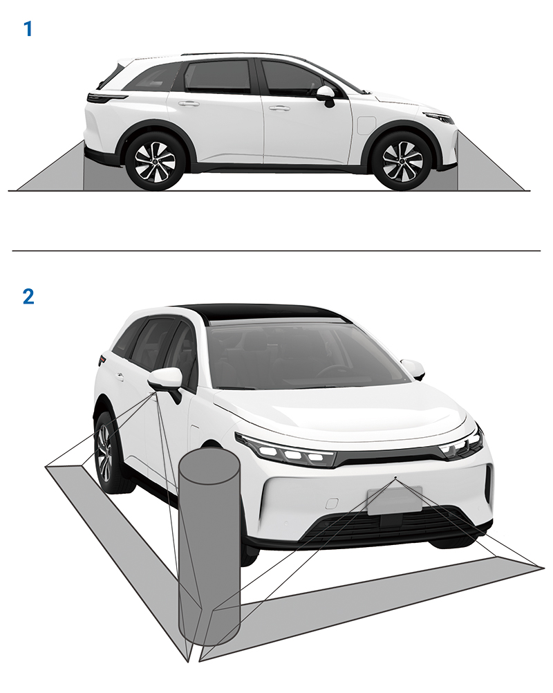- 環景影像輔助系統在某些角度及位置無法偵測到物體。當在各畫面影像顯示時,保險桿下方或地面上的物體可能無法偵測到 1。