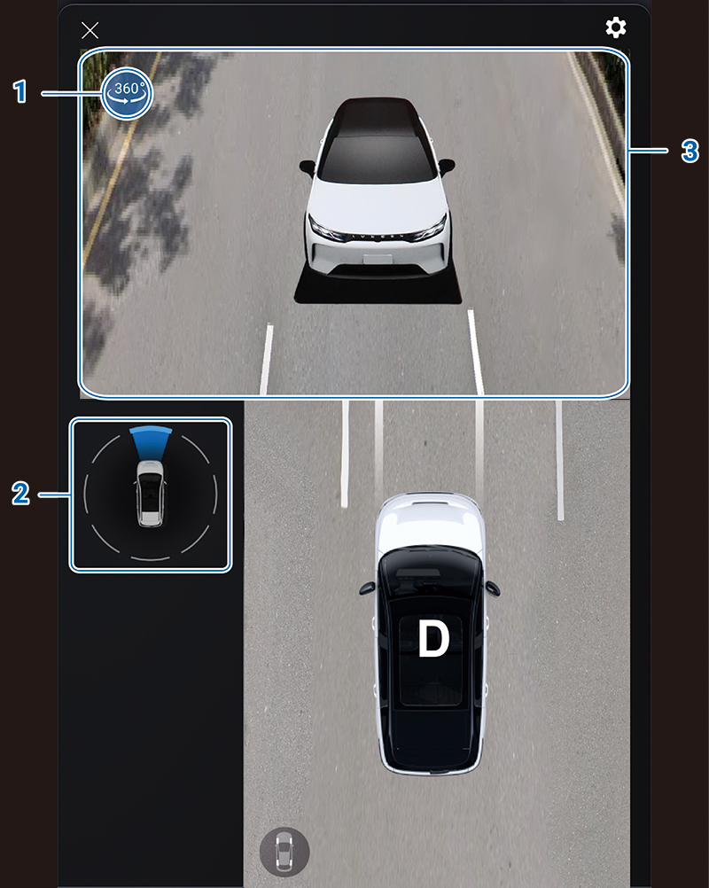將會以車輛為中心的方式顯示周遭的影像畫面。點選影像切換