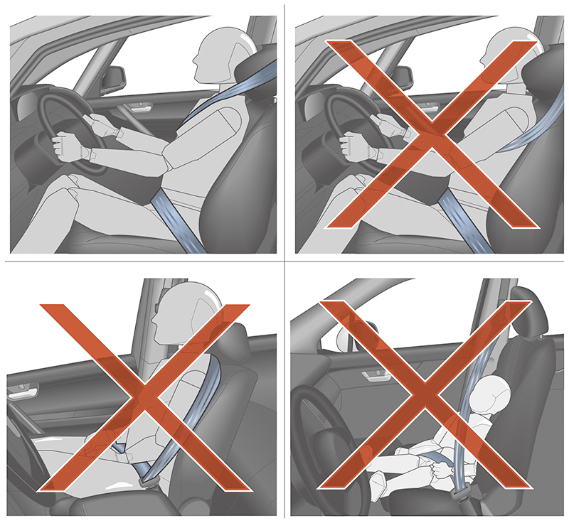 - 坐姿太傾斜靠後,安全帶可能無法有效約束乘客。