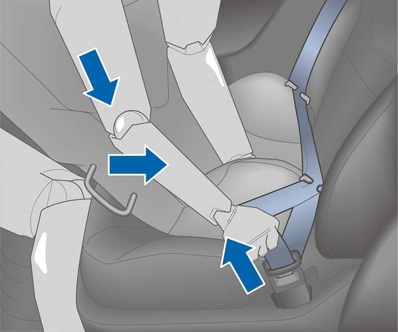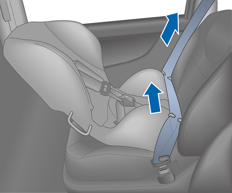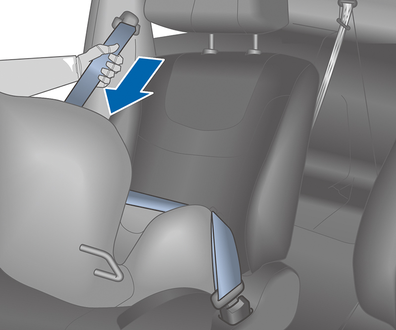 - 將座椅安全帶縮回。拉動安全帶肩帶,使安全帶沒有鬆弛的現象。