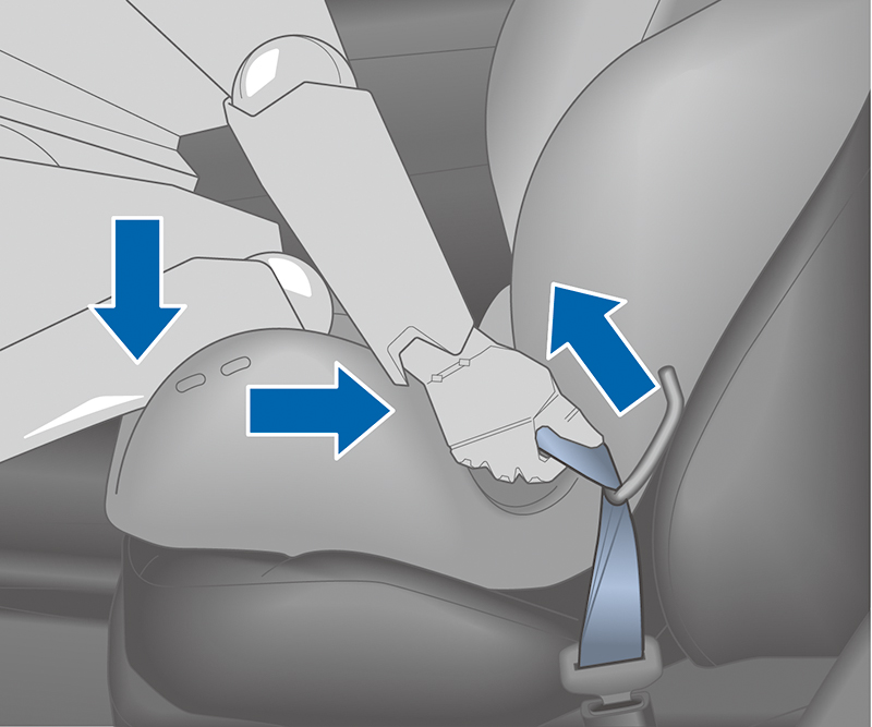 - 試著將安全帶自束緊器拉出以檢查束緊器是否於自動鎖定模式中。若您無法自束緊器中再拉出安全帶,表示是位於自動鎖定模式中。