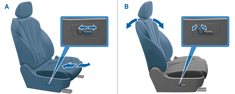 電動座椅馬達附有超載自動切斷保護迴路。若馬達在操作中停止,請等待大約 30 秒後再重新操作。