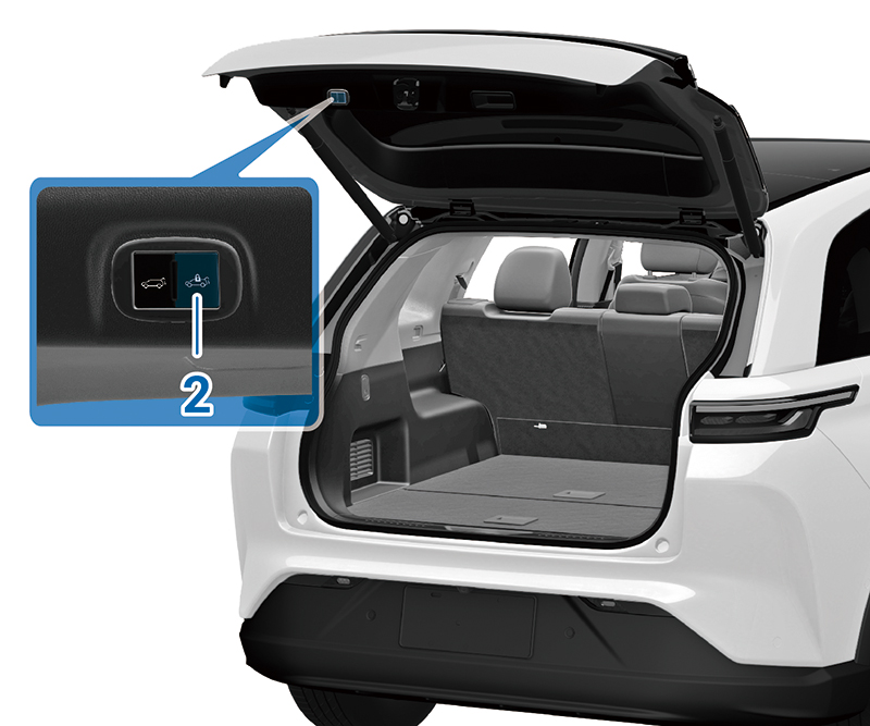 - 電源設定至 ON 狀態時,為確保人員安全,請將車輛停妥,並將檔位設定至 P 檔位置再操作電動尾門。