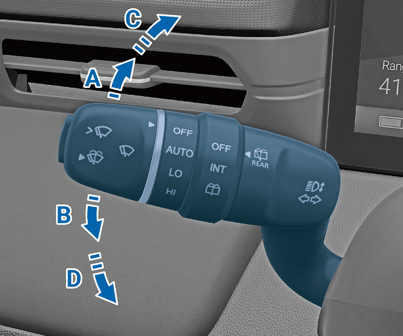 - 將方向燈撥桿逆時針方向轉動到底 (左轉方向燈) D,車輛左側方向燈會閃爍並在方向盤回正後自動關閉。