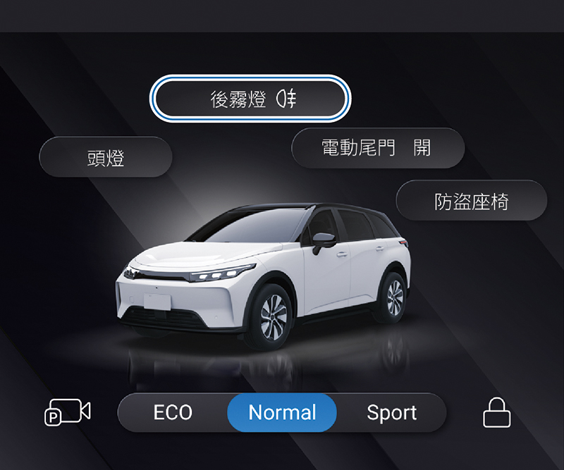 當頭燈開啟時,點選 LuxConnect 的“後霧燈”按鈕,即可使後霧燈開啟。後霧燈開啟時,數位儀錶板中的後霧燈指示燈會亮起。