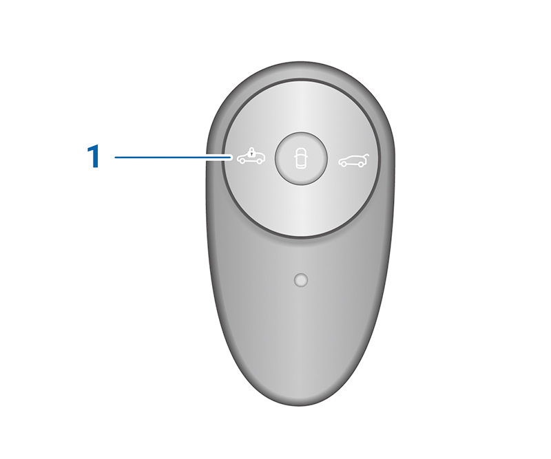 - 當 LuxConnect 的“車鎖”功能開啟後,直接離開車輛即可將所有車門及尾門上鎖,並啟動防盜系統。若“車鎖”功能未開啟,則離開車輛後按一下上鎖 / 解鎖按鈕 1 可將所有車門及尾門上鎖 (所有方向燈閃爍一次且車輛發出一聲提示音),並啟動防盜系統。