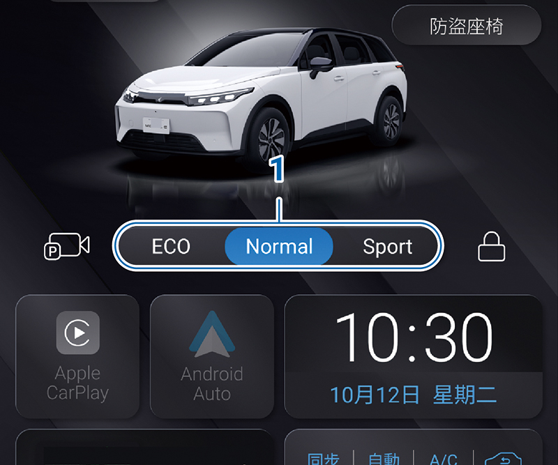 點選 LuxConnect 首頁上的按鈕 1 即可切換三個不同的駕駛模式。