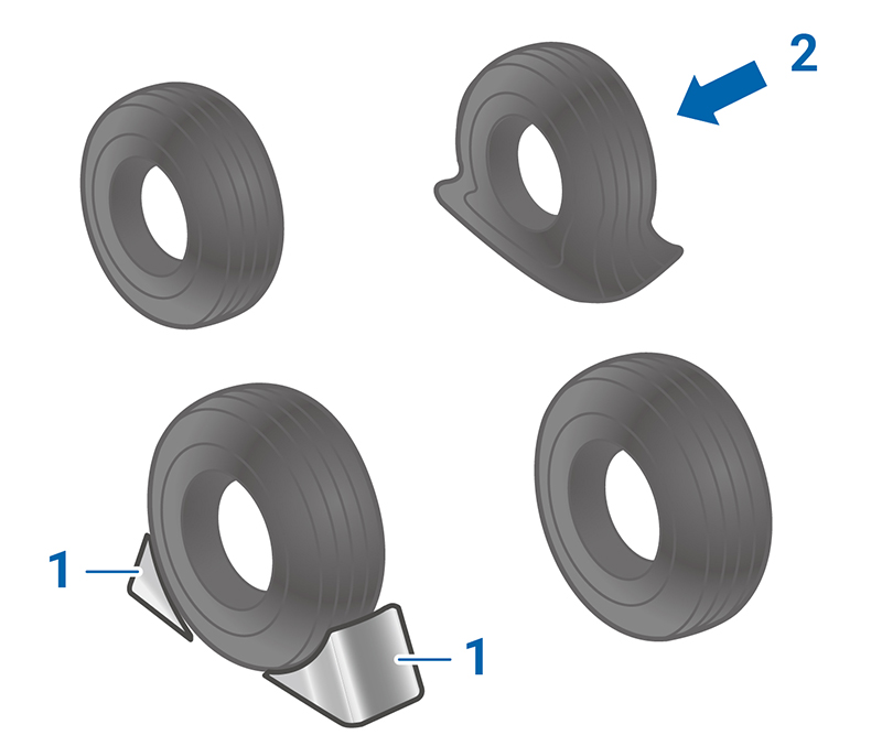 - 輪胎填充補胎劑後,應立即至服務中心進行輪胎內部補胎劑清除,以免補胎劑硬化而造成行駛時輪胎跳動。