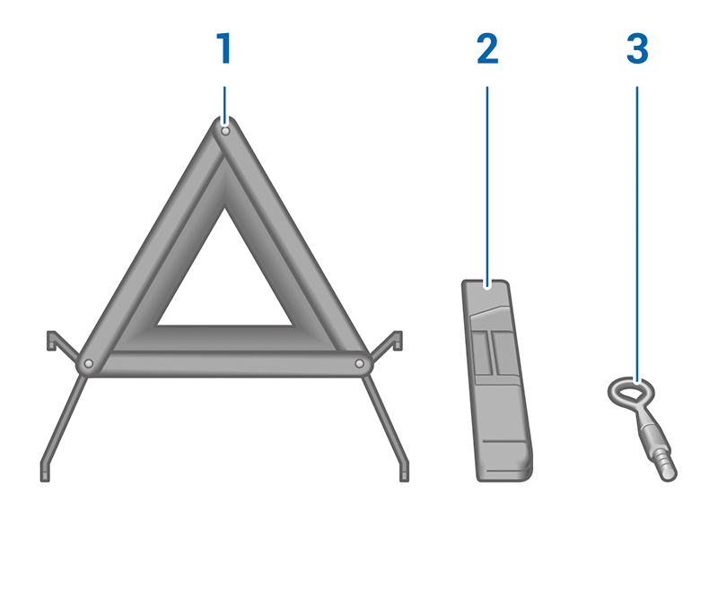 - 開啟尾門,然後取出三角反光警告標示 (位於行李區) 並將其放置於車輛後方適當的位置以警告其它後方車輛,並聯絡服務中心以尋求車輛救援。