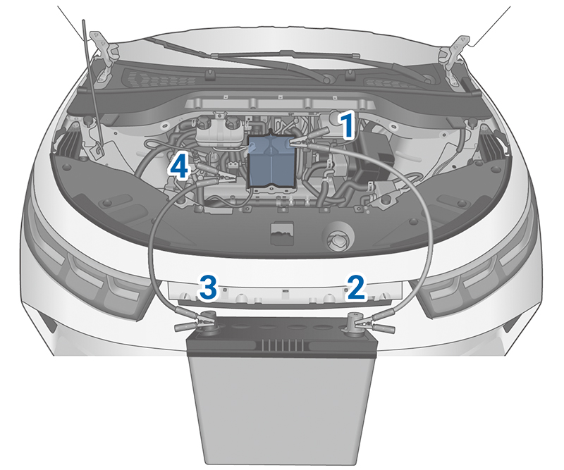 使用救援電瓶來啟動車輛時,必須遵照下列的指示及注意事項進行。有關跨接啟動及電瓶的相關問題,請洽詢服務中心。