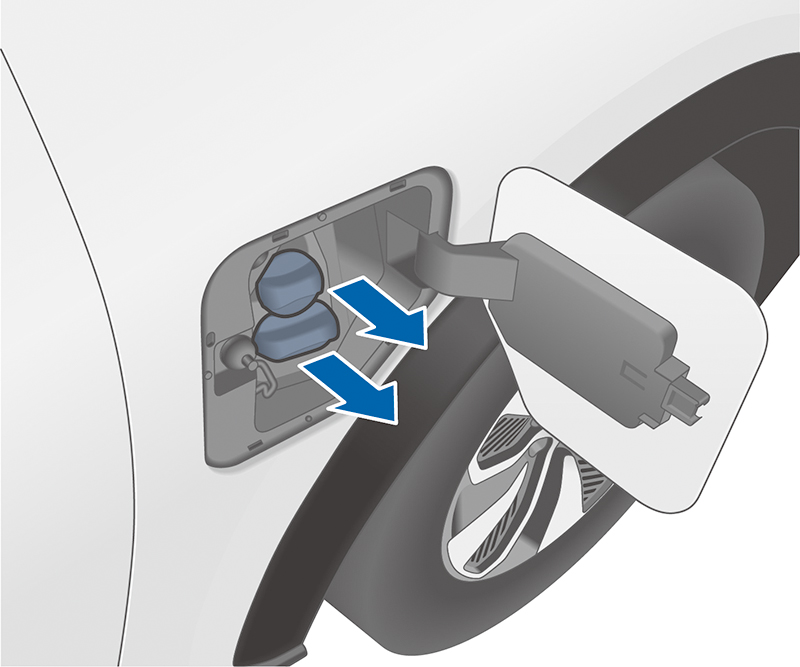 - 於車輛右前方充電埠的位置,按下充電埠外蓋左側部位即可打開充電埠外蓋。