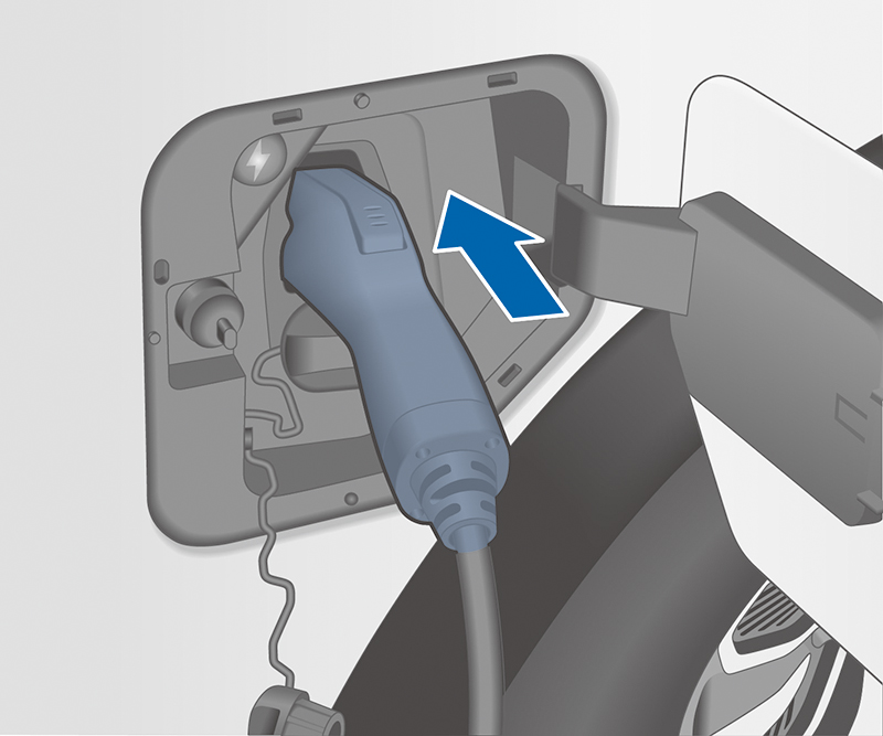 完成充電或充電中斷後,請從車輛充電埠中取下充電槍 (如充電槍固定鎖作用時,請點選解鎖充電埠按鈕對充電槍固定鎖進行解鎖操作),並將充電槍依照充電裝置的說明存放至指定位置,然後重新裝入充電埠護罩並蓋上充電埠外蓋即可。