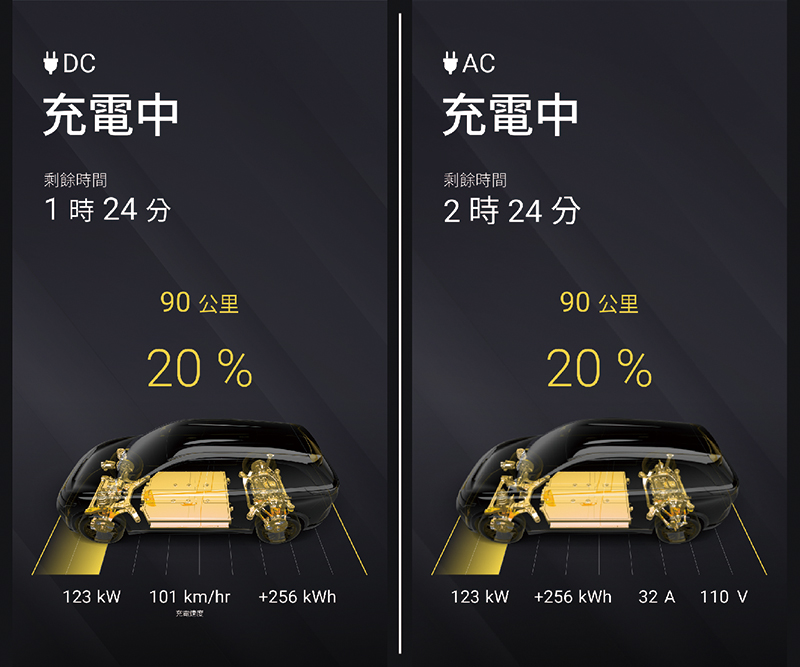 DC 充電至 100% 後,由於高電壓電池組的內部化學轉換因素,實際行駛或靜置一段時間後系統可能會顯示為 98~99%,這並非故障。