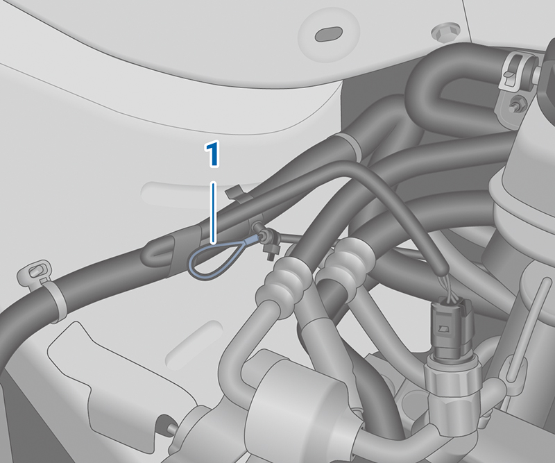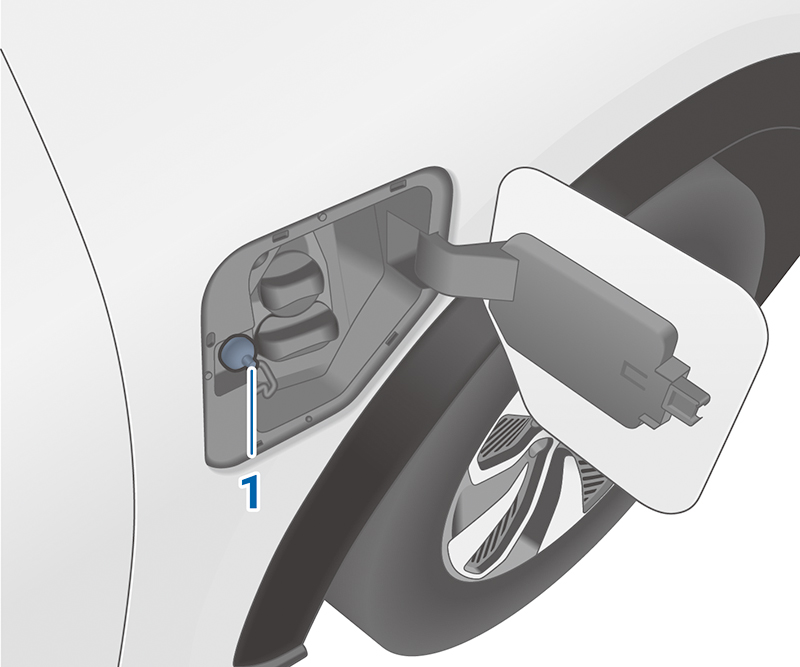 - 拉動充電槍緊急釋放拉繩 1,充電槍鎖扣即會解鎖且可從充電埠中取下充電槍。