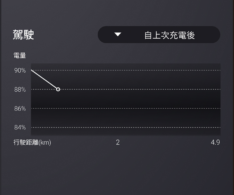 點選畫面右方的選單可設定依照“自上次充電後”、“自上次駕駛後”方式來顯示電量的變化曲線。